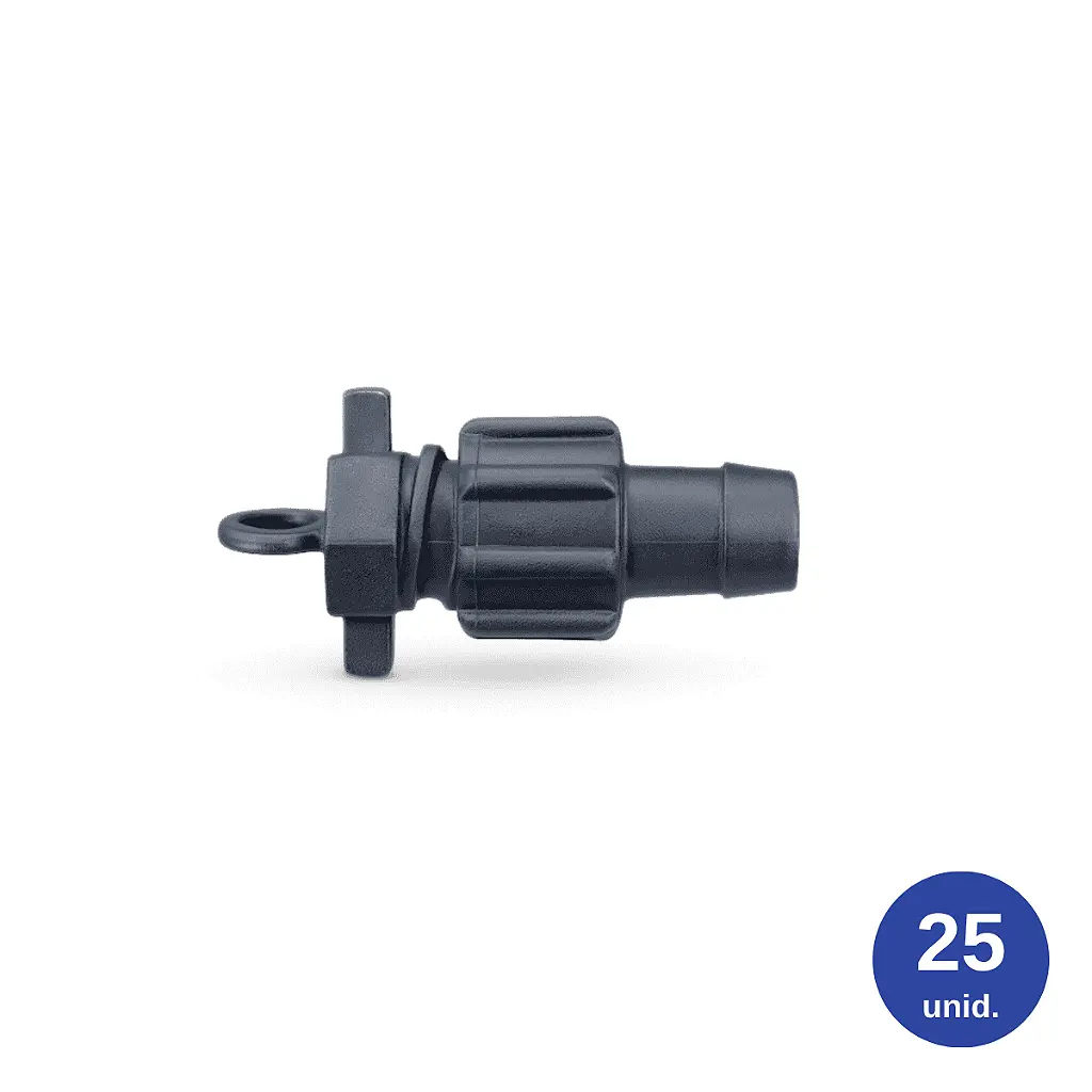 Contém 25 unidades do Conector Final com Trava Porca para Mangueira de Gotejamento – Zanagro.